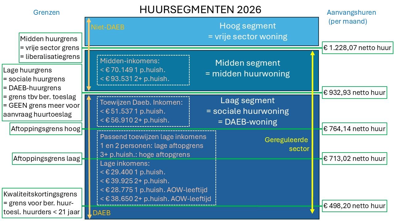 Bijgaand een overzicht van de huursegmenten zoals bepaald voor 2026